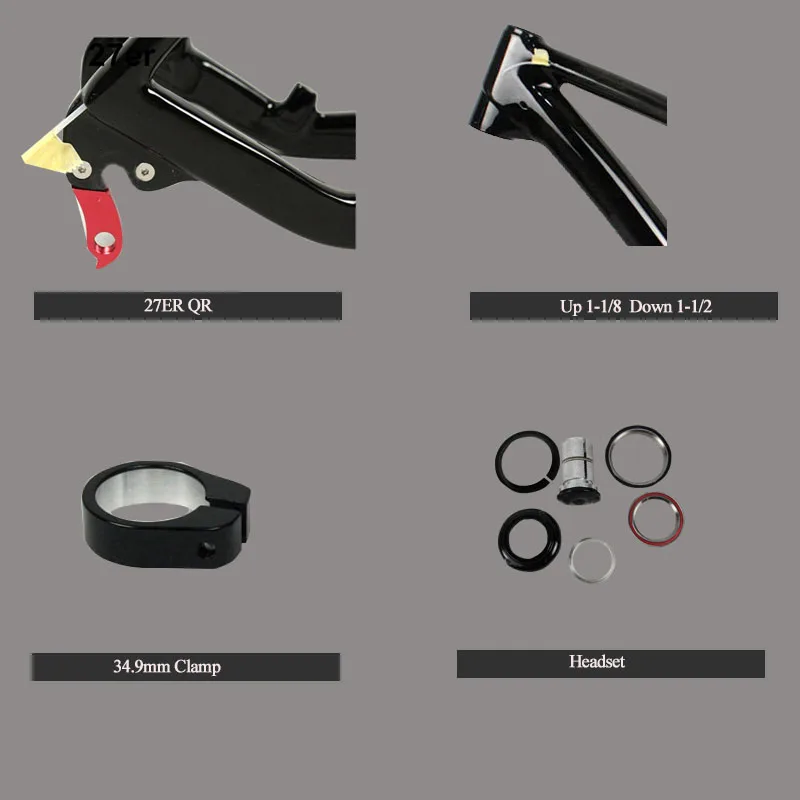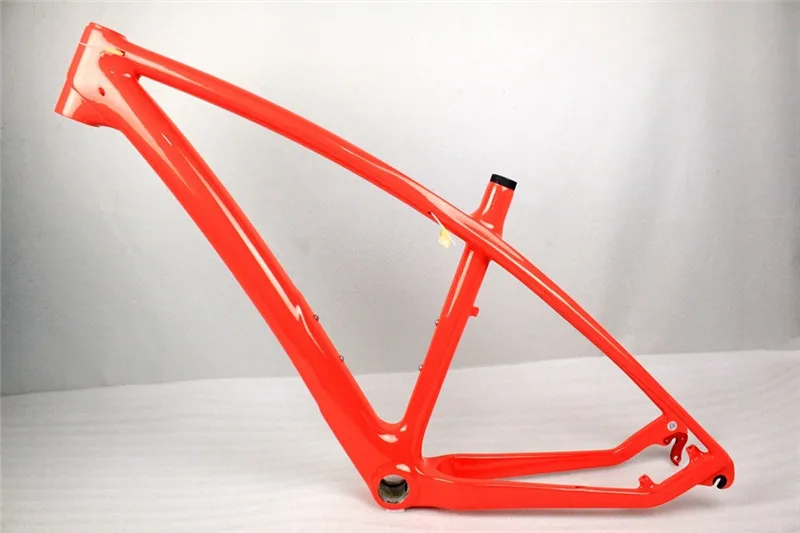 27er Down hill carbon MTB frame 135*9 quick release carbon bike frame accept OEM painting China cheap bike frame Recommend products Information of carbon bike frame 27.5er Frameset include: Frame ,clamp , headset carbon material : carbon fiber T800 Weight of the frame: about 1050g( size 15.5) Rear size : 135*9 mm Headset size : up 1 1/8- down 1 1/2 Seatpost size :31.6mm BB Type: BSA/BB30 Available size : 26ER / 27ER (15.5/17.5/19.5) Geometry Real pictures of 27er mtb frame Black Red Blue White You can customized it withOther colors